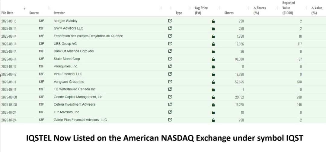 Institutional Confidence – Approximately 12 institutional investors now hold 4% of IQST shares, just 120 days after our Nasdaq uplisting.